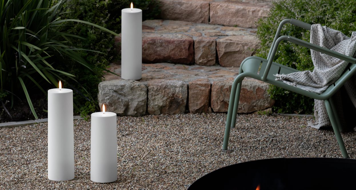 Bring warmth and ambience to your outdoor spaces with our newly reengineered Outdoor Pillar Candles, designed to shine brighter and last longer. Now powered by D batteries, each candle offers an impressive battery life of up to 1000 hours—perfect for creating long-lasting atmosphere, season after season. Crafted for durability and performance, these flameless candles are splashproof, wind-resistant, and UV-protected, making them ideal for gardens, patios, balconies, and beyond. Whether you’re hosting under the stars or enjoying a quiet evening on the porch, these candles deliver the magic of real candlelight without the worry. Elegant yet tough, and easy to use with our remote control, this collection blends practical innovation with timeless style.